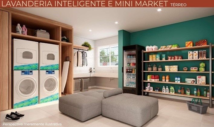 | Lazer – Térreo | Academia, Coworking, Salão de Jogos, Brinquedoteca, Espaço Influencer, Espaço Pet, Lavanderia Inteligente, Mini Market, Churrasqueira, Playground, Salão de Festas / Churrasqueira e Mini Quadra |